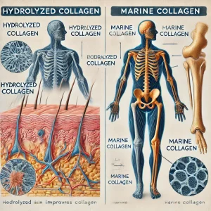 El colágeno hidrolizado y los péptidos de colágeno marino trabajan en sinergia para mejorar la elasticidad de la piel y apoyar la salud de las articulaciones.